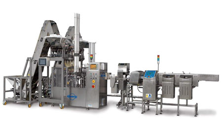 mit 2 Dosiereinheiten für Trockenprodukte, Metalldetektor und Kontrollwaage