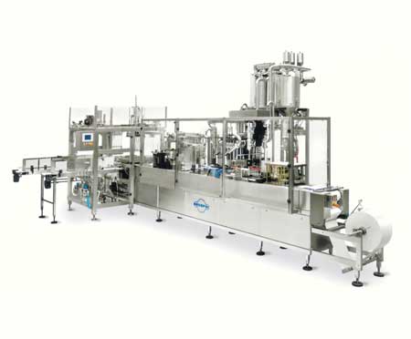 Becherfüllmaschine Typ NOVACUP RM 150 - 2 für drei Format mit Servodosierung und