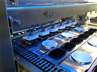 2–8 bahnige Anlagenkonfiguration für die flexible Abfüllung verschiedener vorgeformter Becher. Lineare Anlage für die Verpackung von verschiedenen Molkereiprodukten,